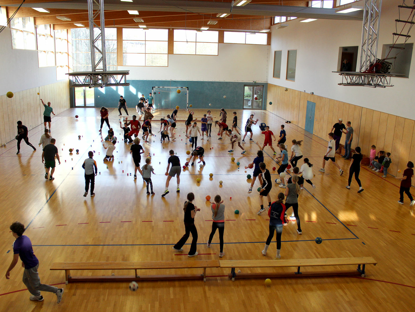 Den Abschluss des Morgens bildete eine Sporteinheit in der Turnhalle der Jugendbildungsstätte. Nach dem Mittagessen galt es dann, eine besondere Aufgabe zu meistern. Wir bekamen eine Palette mit Rollen, 10€ und etwas Werkzeug. Nun waren Organisationstalent und Geschick gefragt. Innerhalb der nächsten vier Stunden sollte ein möglichst kreatives Paletten-Auto entstehen. Da wir genügend Personen waren, konnten wir zwei Teams an den Start schicken. Das Team Flower Power überzeugte durch ein buntes und florales Gefährt. Das Team JesusWings setzte mehr auf schlichte Farben und nur wenig Deko.